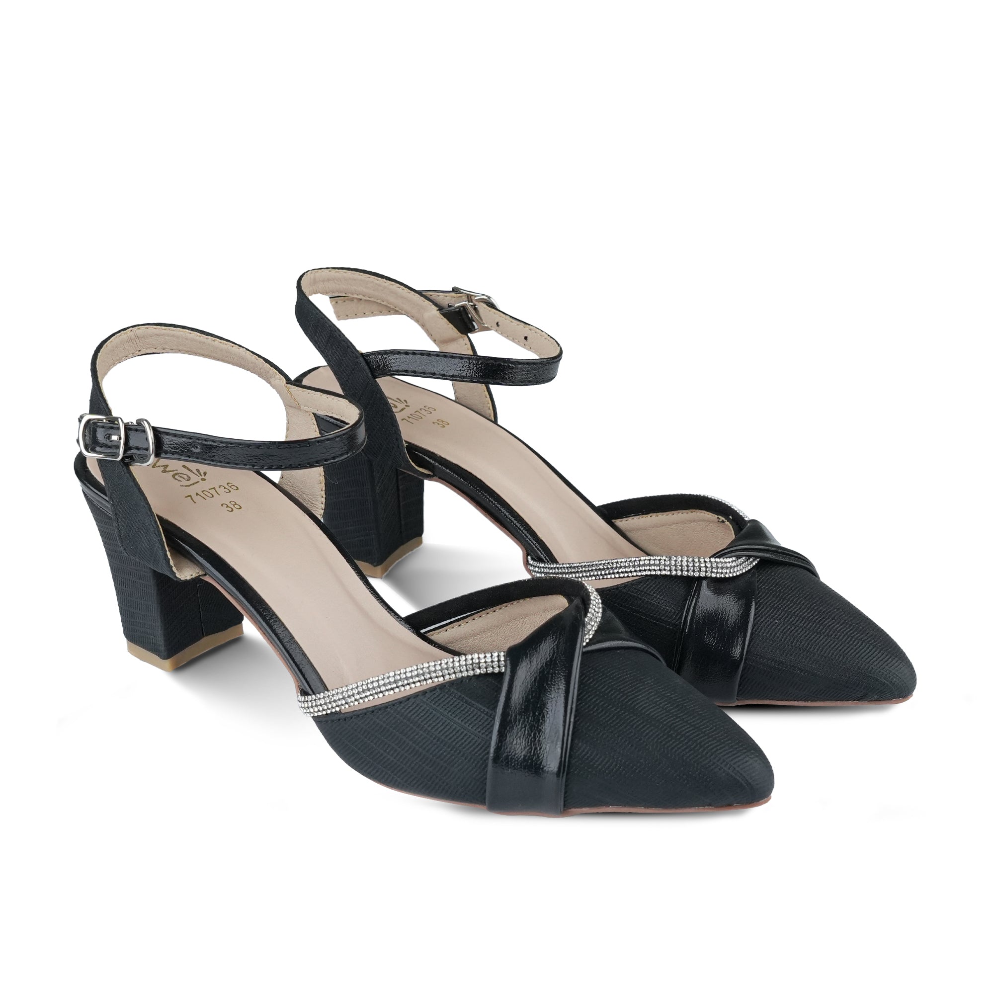 Elevate your evening attire with these sophisticated black ankle strap heels. The delicate rhinestone detailing adds a touch of glamour, while the comfortable block heel ensures all-night comfort. Perfect for weddings, parties, or any special occasion.