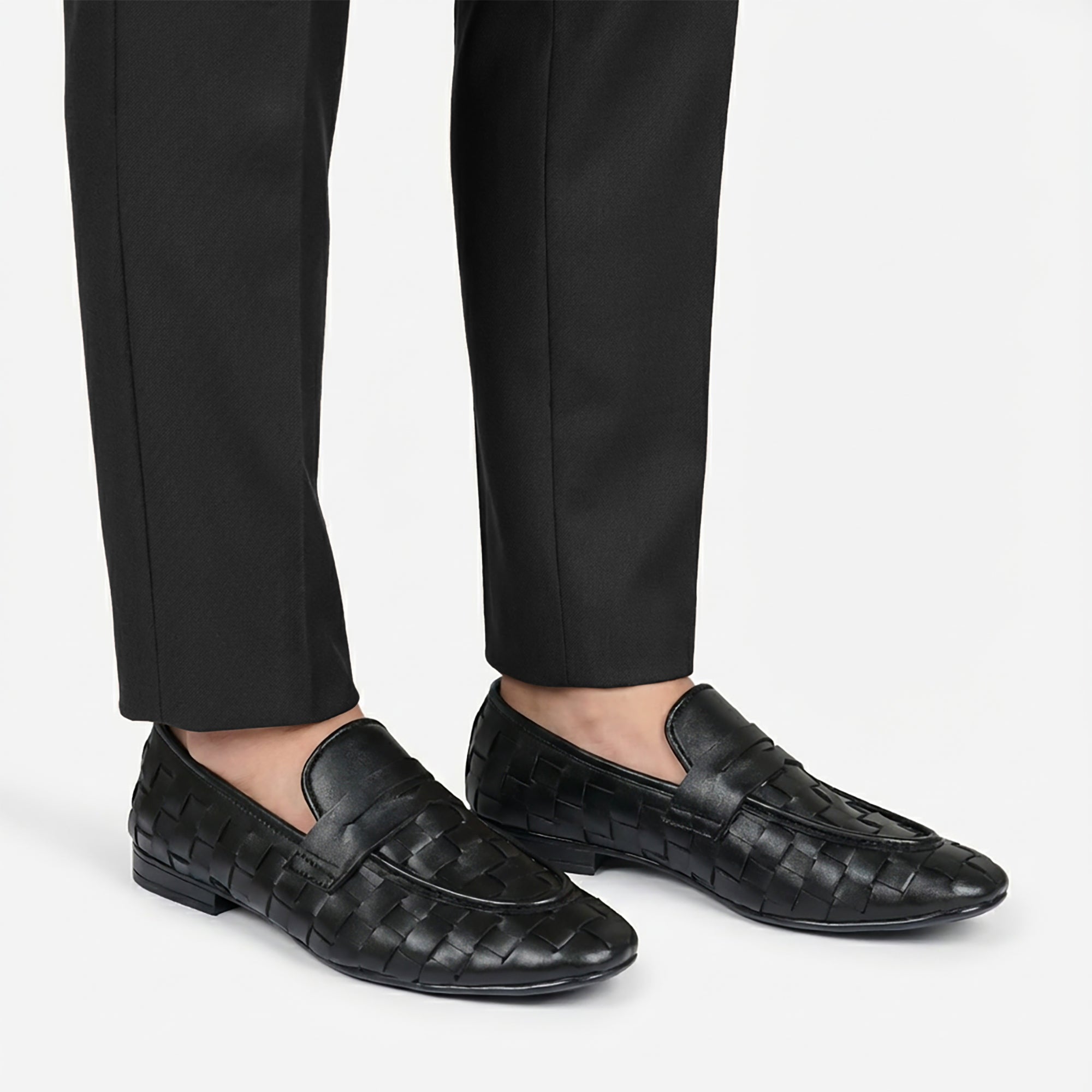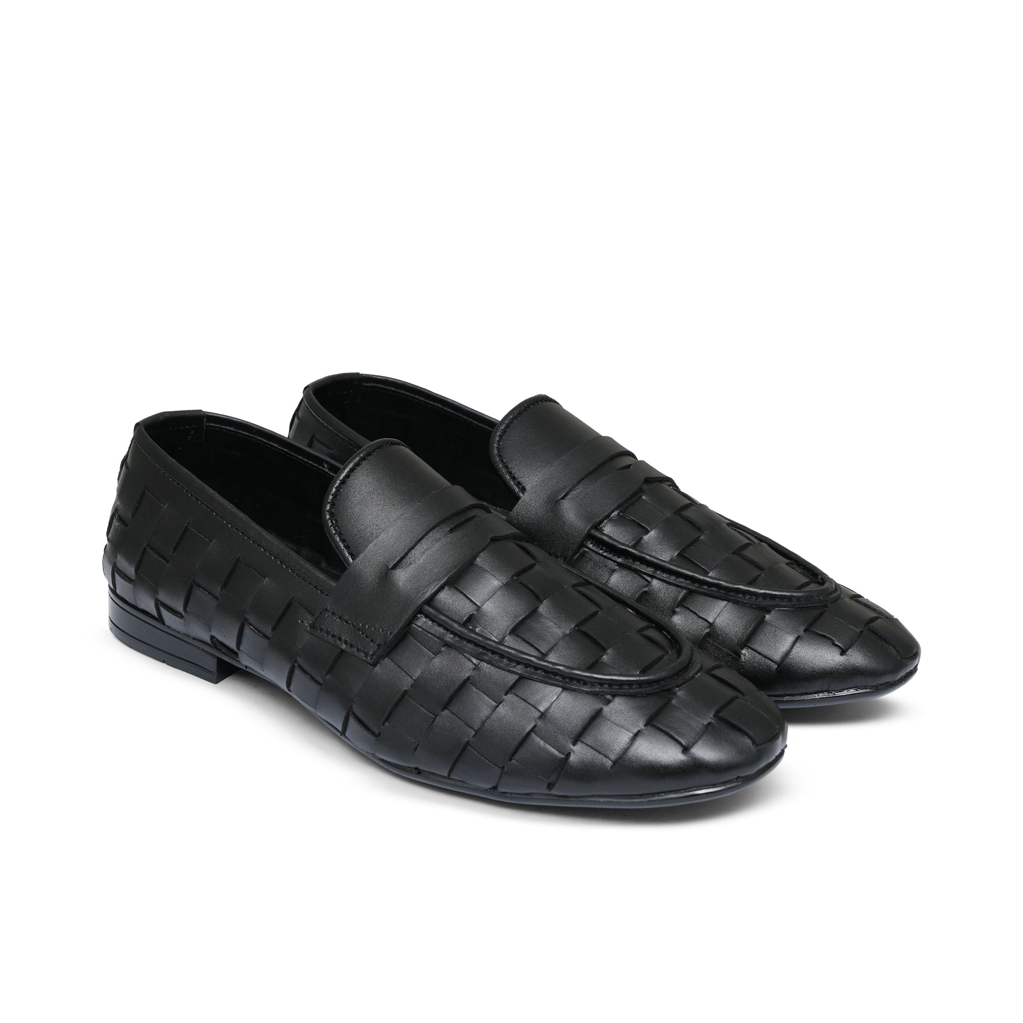 Black Leather Woven Shoe PA03