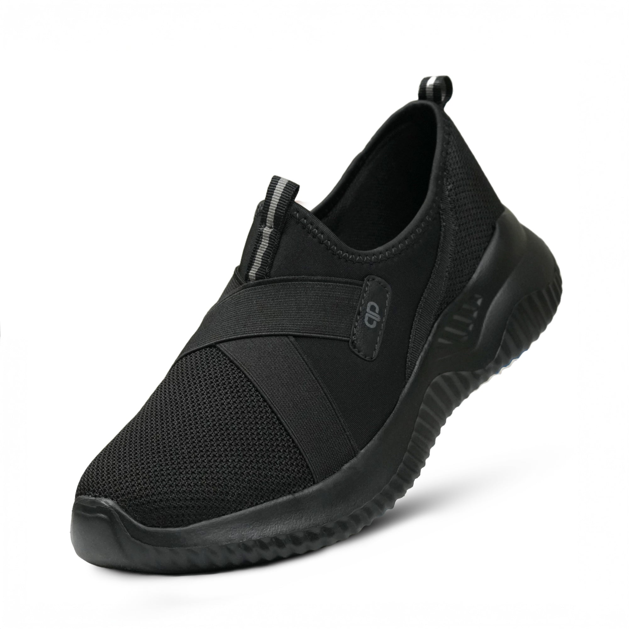 Experience the perfect blend of style and comfort with these sleek black slip-on athletic shoes. Designed for both casual and active wear, these shoes feature a breathable mesh upper and a flexible, cushioned sole for all-day comfort. The elastic cross straps provide a secure fit, while the pull tab at the heel ensures easy on and off. Ideal for walking, running, or everyday activities, these shoes offer both functionality and a modern aesthetic.